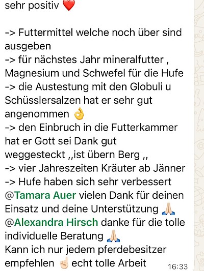 Ich bin Fütterungsexpertin nach Dr. Christina Fritz und berate meine KundInnen in meiner Tätigkeit als Tier- und Menschen-Energetikerin seit über 10 Jahren. Auch in meinen Facebook Gruppen „Basics der Pferdefütterung“ und „Heu mit bester Qualität Austausch“profitieren viele Landwirte und Pferdebesitzer seit Jahren von meinem Einsatz für Mensch und Pferd.